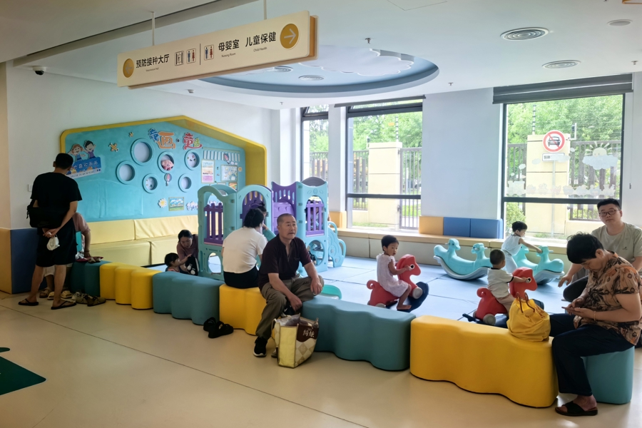 值得一提的是,儿童健康中心以“童趣化”设计为特色。近900平方米的区域内,候诊区设置滑梯、木马、积木桌等游乐设施,可有效缓解儿童就医恐惧;墙面软包处理、诊台圆角防撞设计,保障儿童安全;独立母婴室与健康教育区的设置,尽显人文关怀。