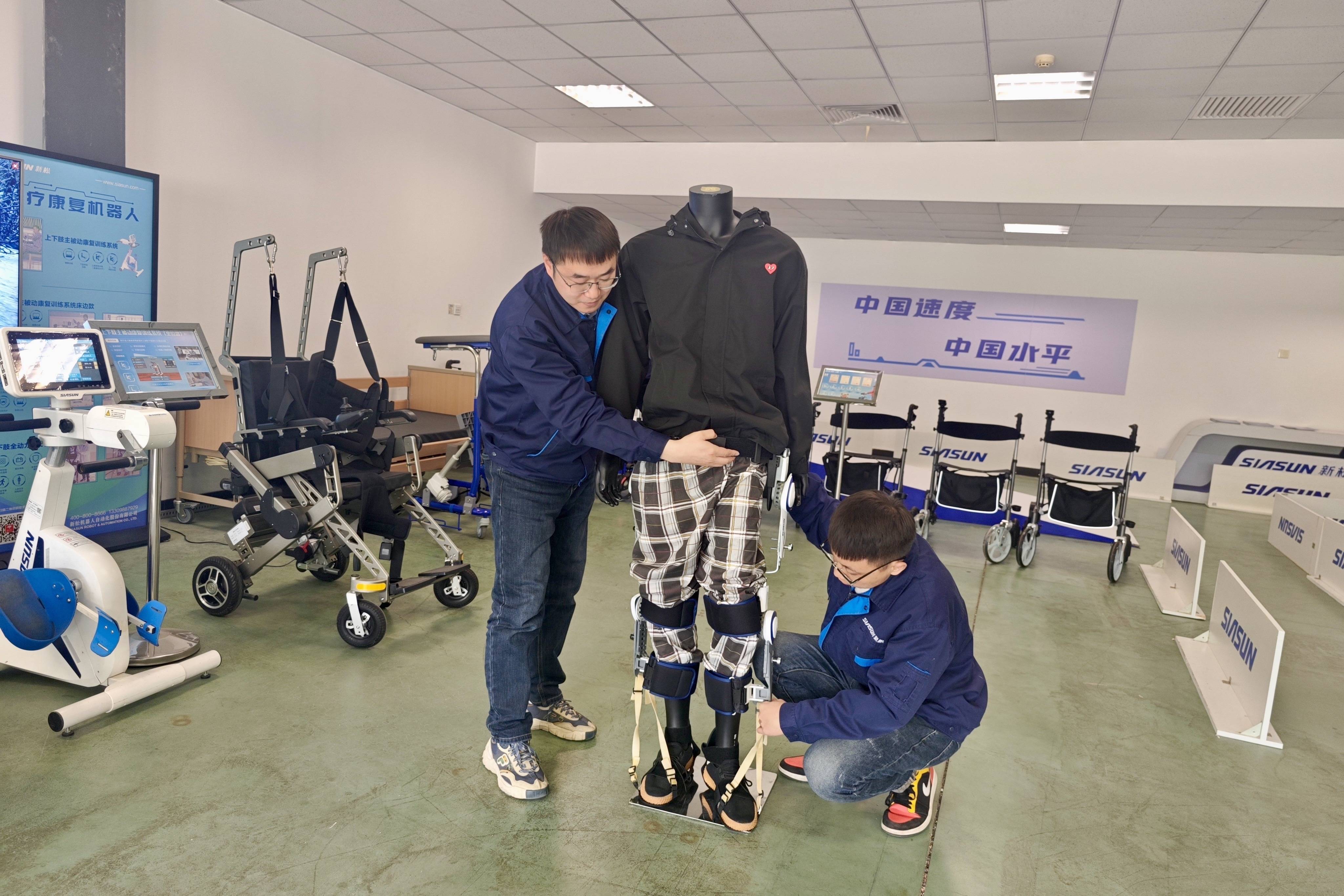 在辽宁,曾患脑梗的七旬老人在下肢外骨骼训练器助力下,从基础的勾脚背、抬腿、屈髋开始,到跨步训练、上下楼梯、扶桌蹲起,逐渐能以正确的姿势行走。看到这一幕,“90后”丛朝阳倍感欣慰。